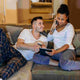 The iPad's form factor lets you hold it like a book or prop it up on your lap. The MacBook's larger screen can be nice for longer viewing sessions, and its speakers generally provide richer sound.