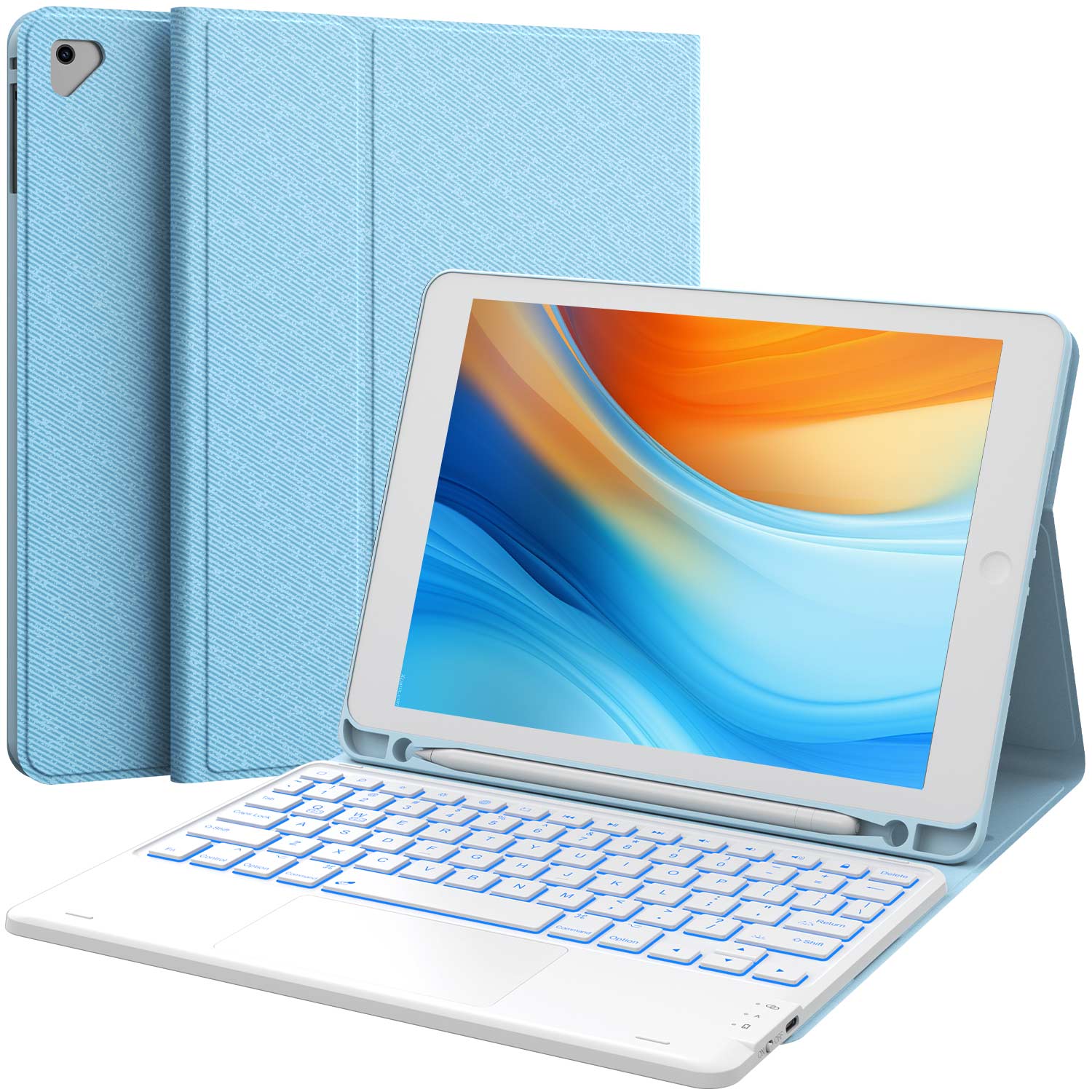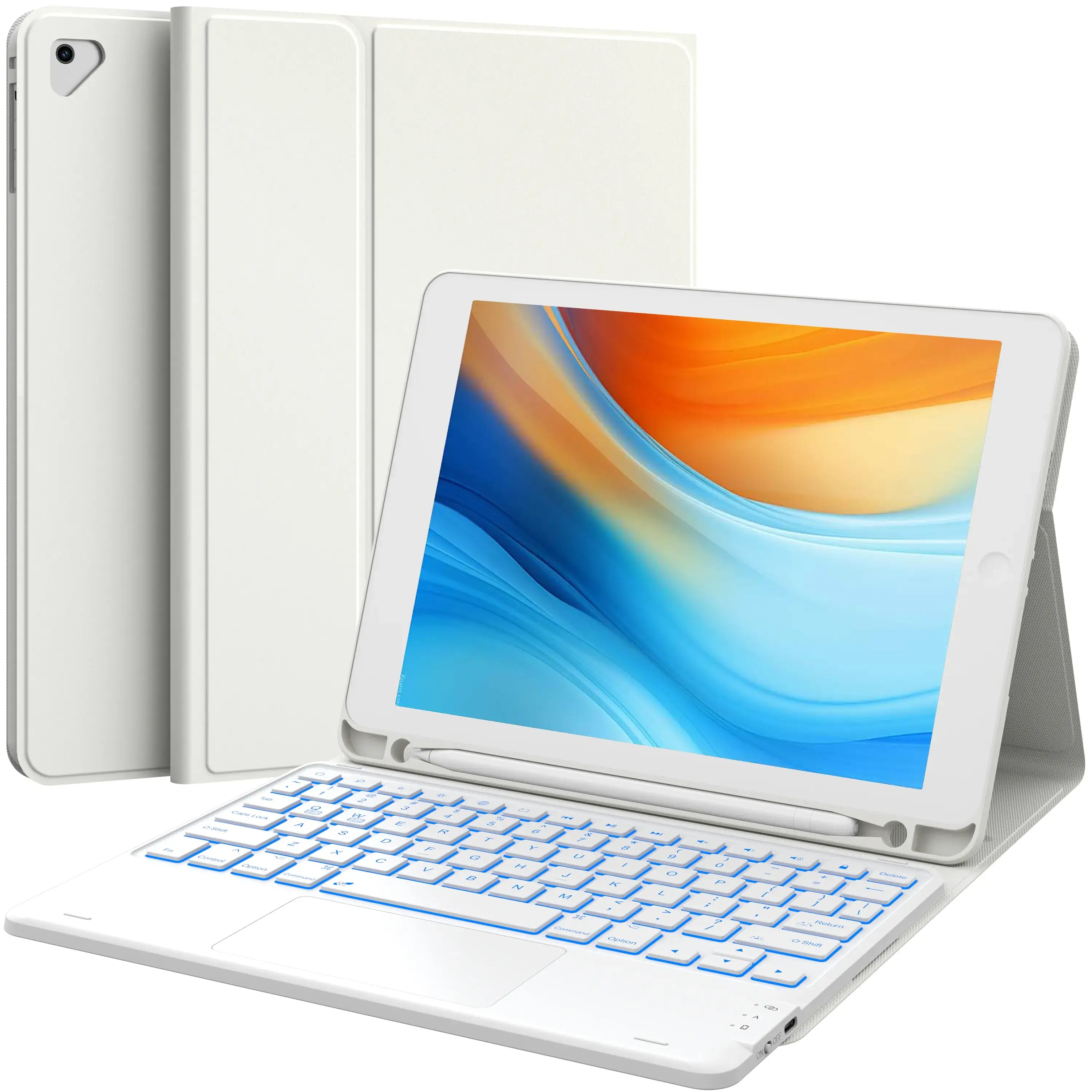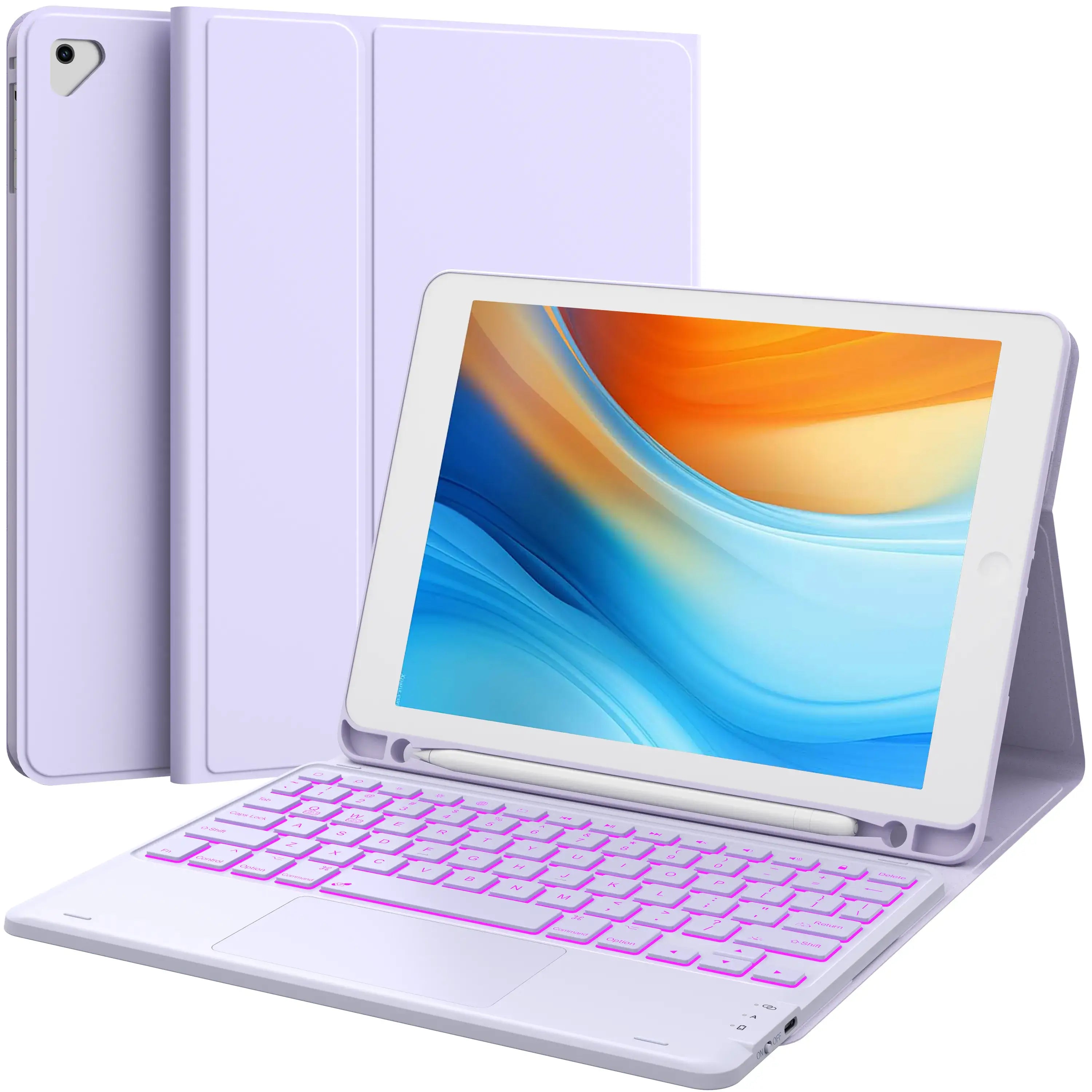 【BACKLIT KEYBOARD FOR IPAD 9TH GENERATION】- The keyboard case provides 7 color backlit options and 3 brightness modes, It has 3 brightness modes and breathing rate...