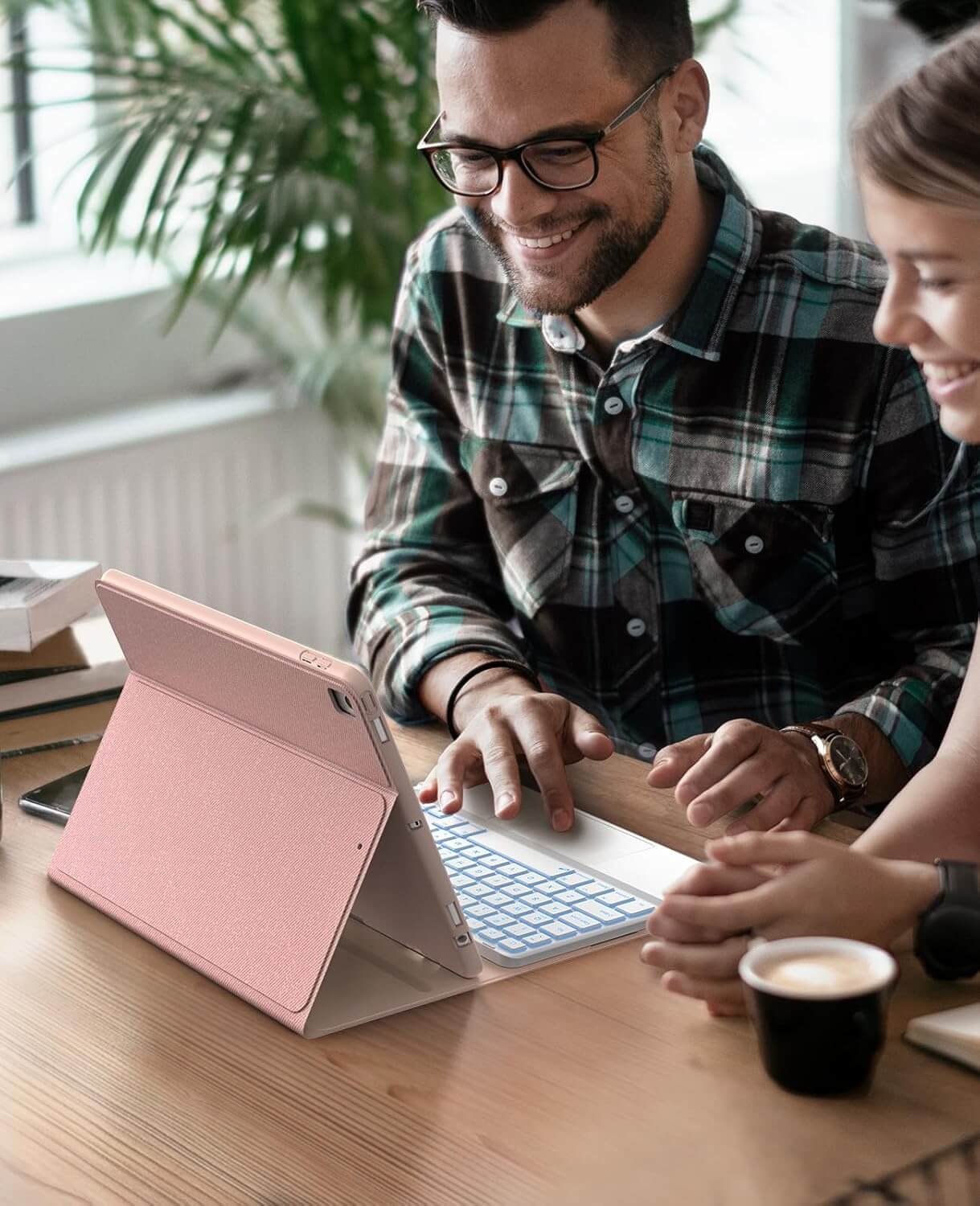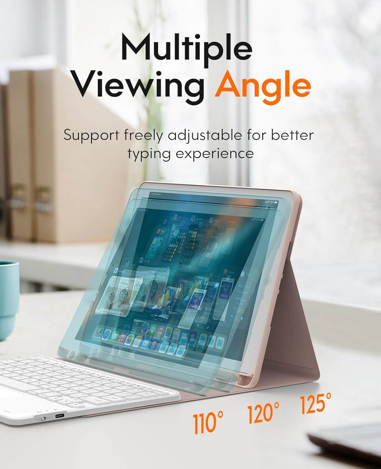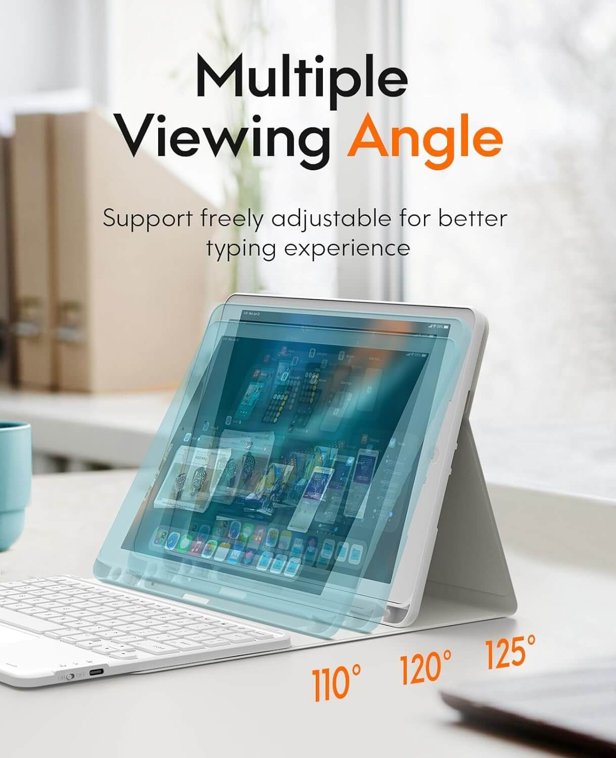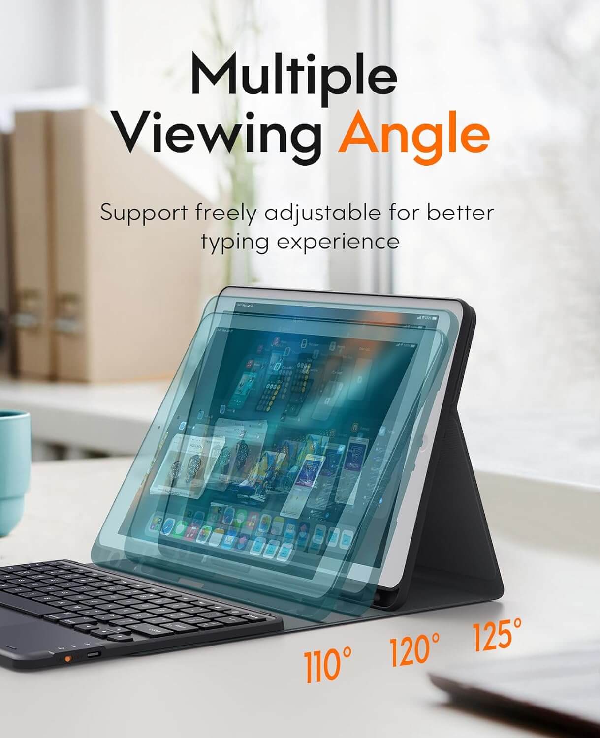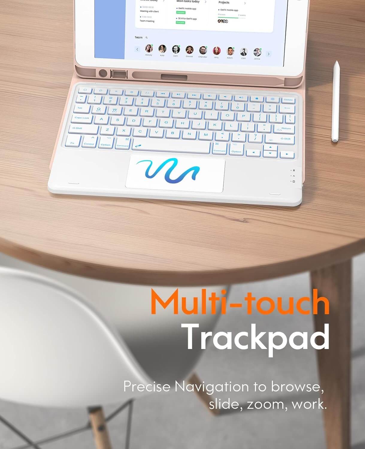 - 【MULTI-TOUCH TRACKPAD】- This keyboard case for iPad 10.2 has an integrated multi-touch trackpad that perfectly adapts to the IOS system, with various trackpad gestures, providing a comfortable usage experience while clicking, scrolling, and swiping through content effortlessly. Allows you to turn your 10.2/10.5 inch tablet into a real laptop and is very convenient for your typing, watching, working, and carrying without a mouse needed.