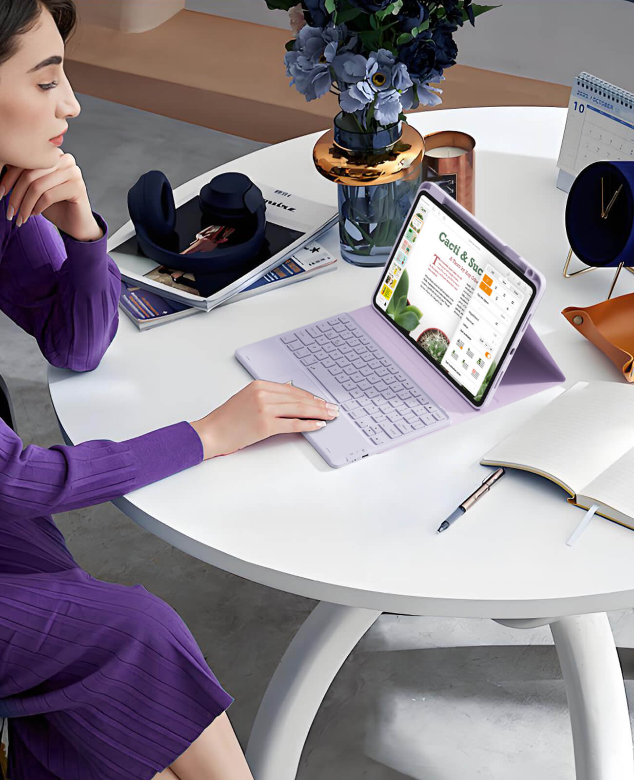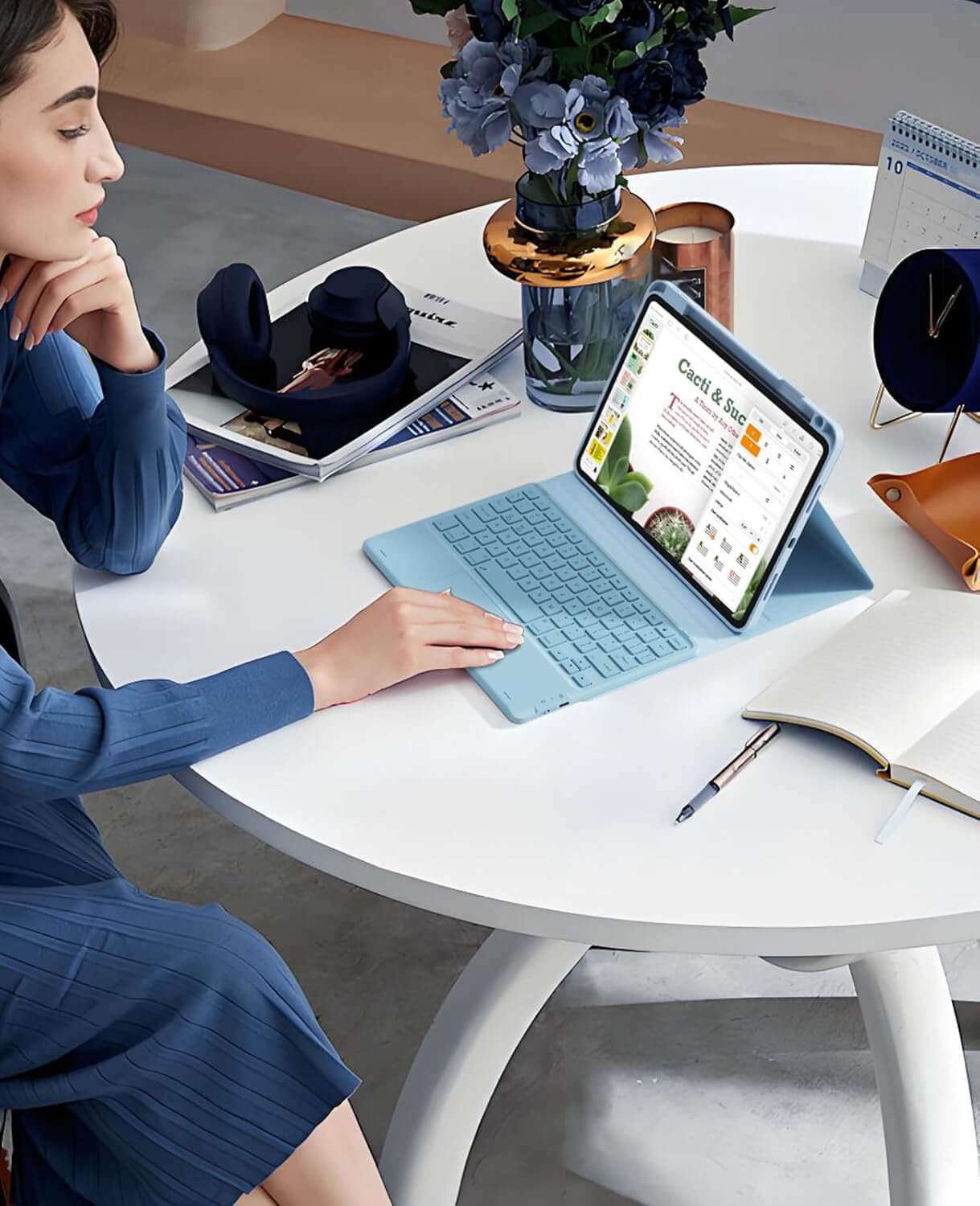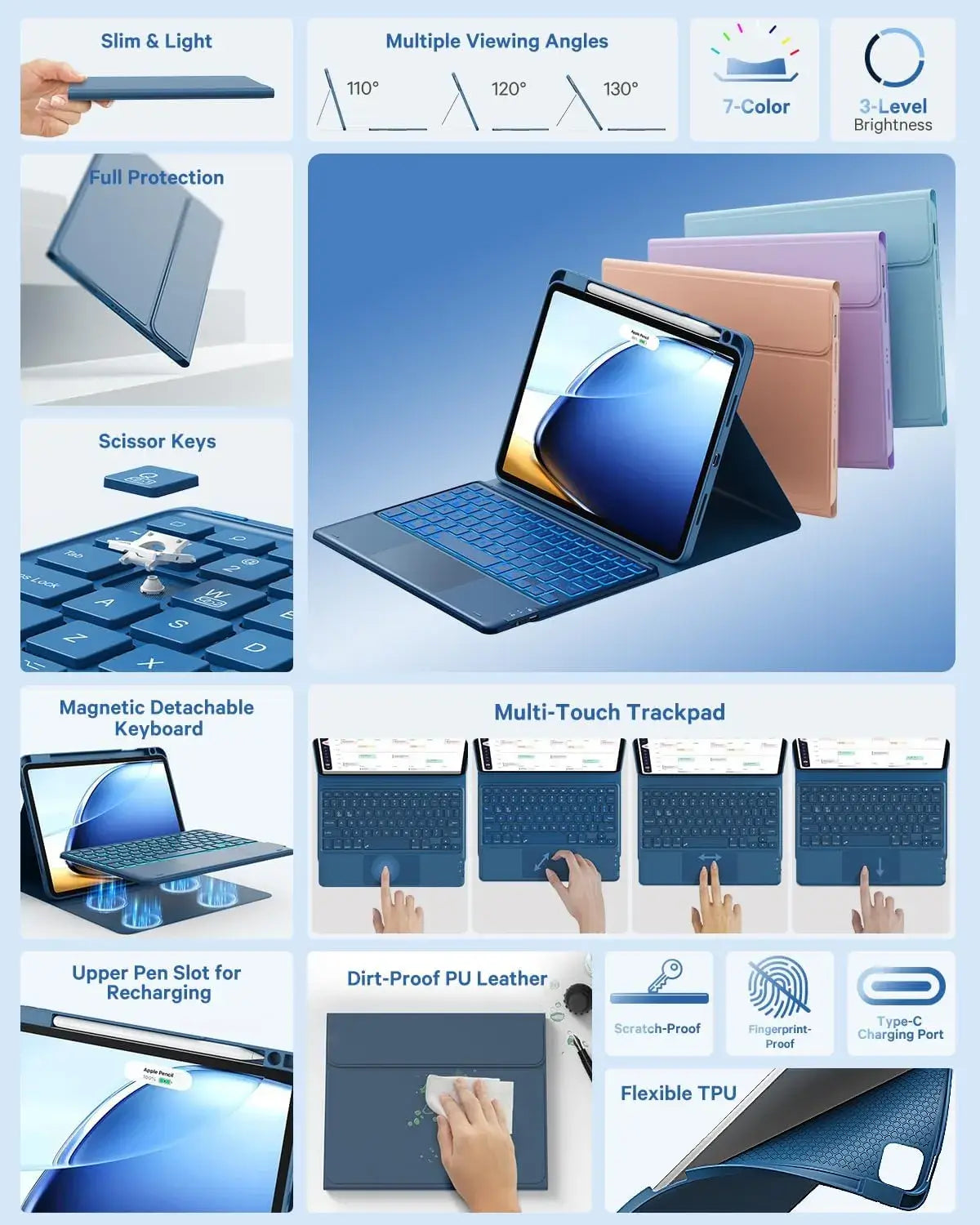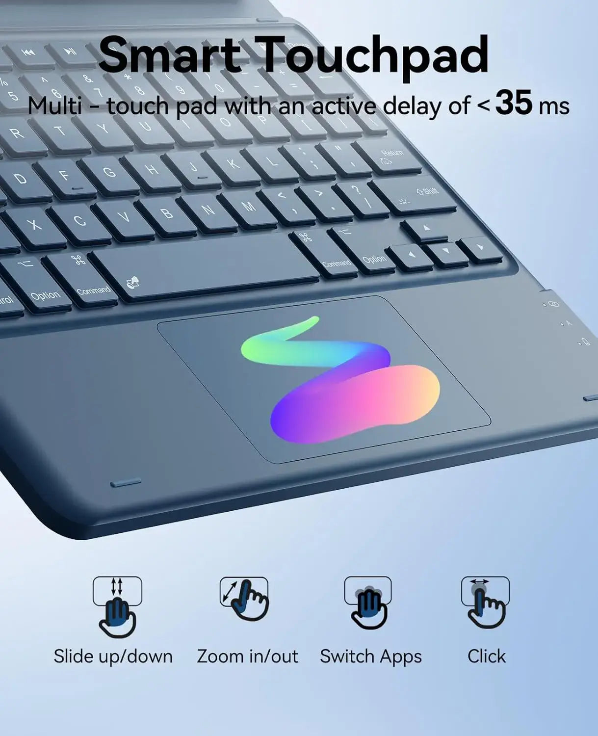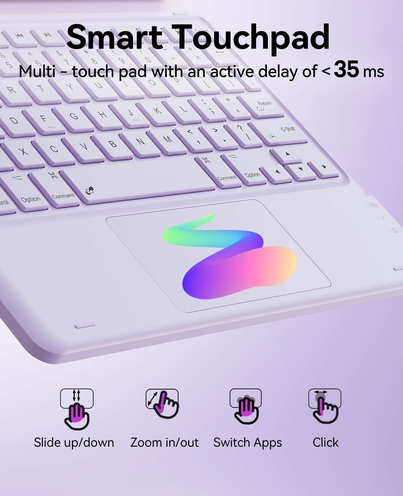 - [Smart Trackpad] This keyboard with touchpad for iPad Pro 11 is often more compact and lightweight, making it easier to transport and use with a laptop or tablet. The touchpad features the latest anti-touch technology and supports multi-functional gestures. That makes you more efficient and relaxed when using it.