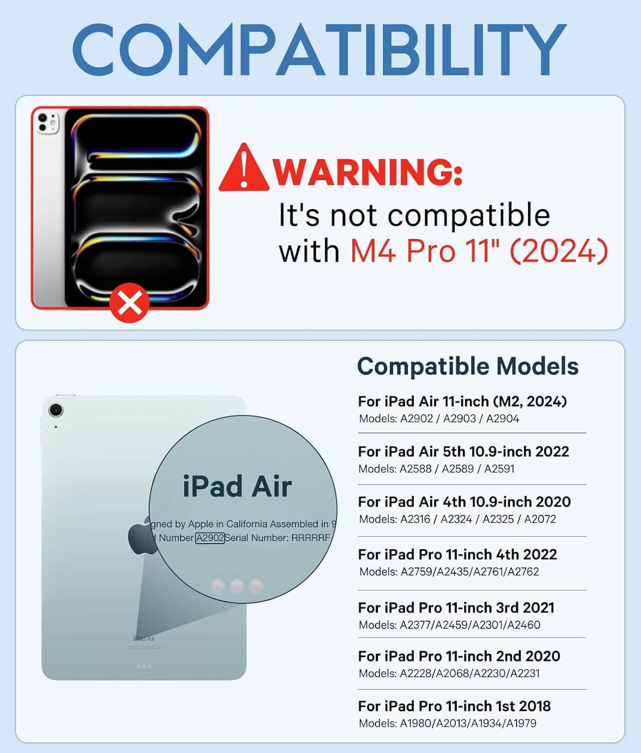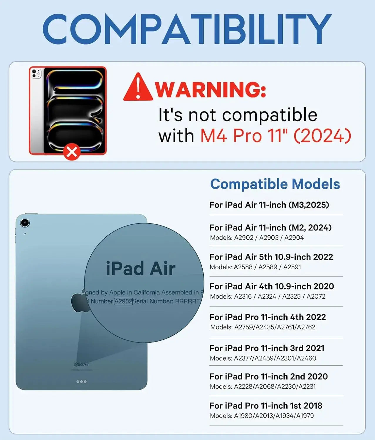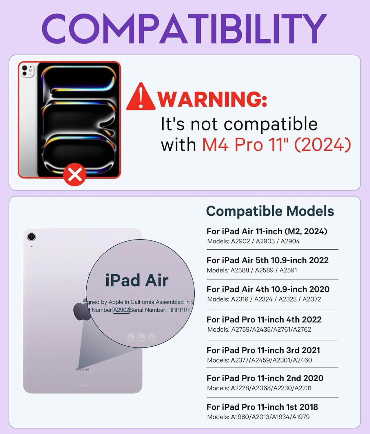 Compatible with iPad Air 11-inch (M2)2024, Air 5th Generation 10.9 inch 2022 (A2588/A2589/A2591).