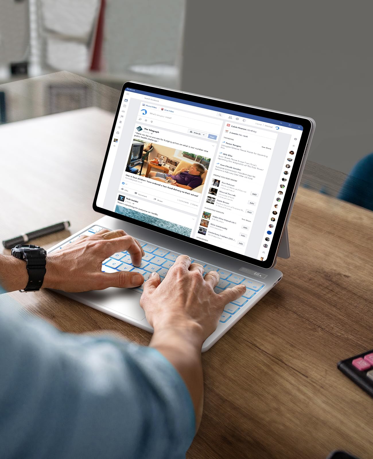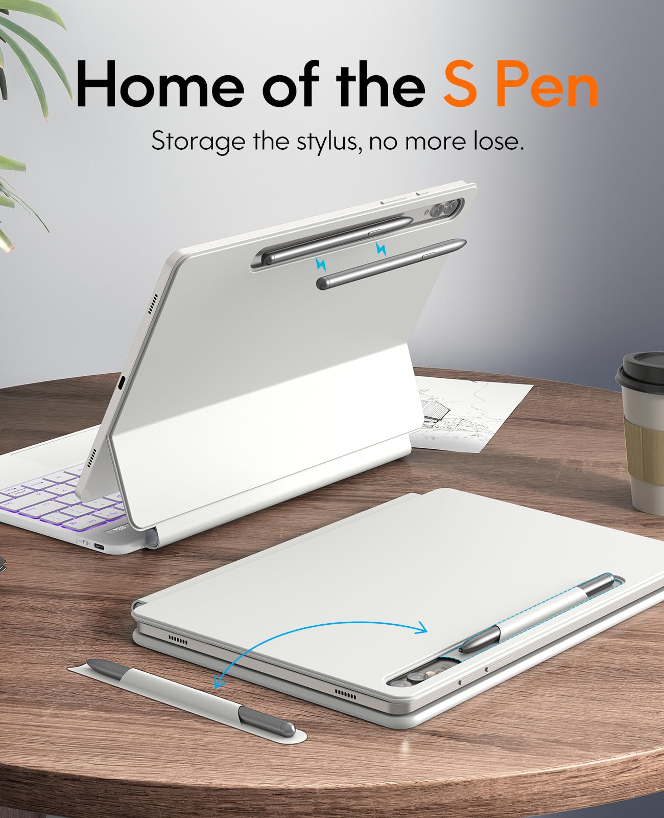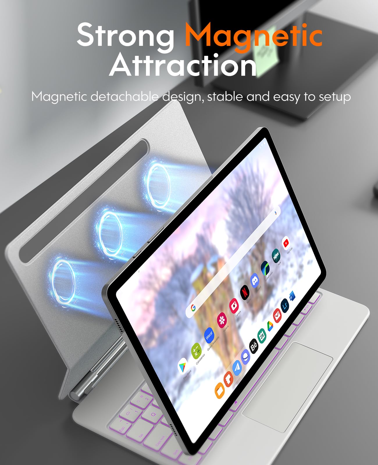 【Humanized Magnetically Design】 Just need to open the magnetically cover and put the tablet on it to complete the floating set-up, brings laptop-like use experience.