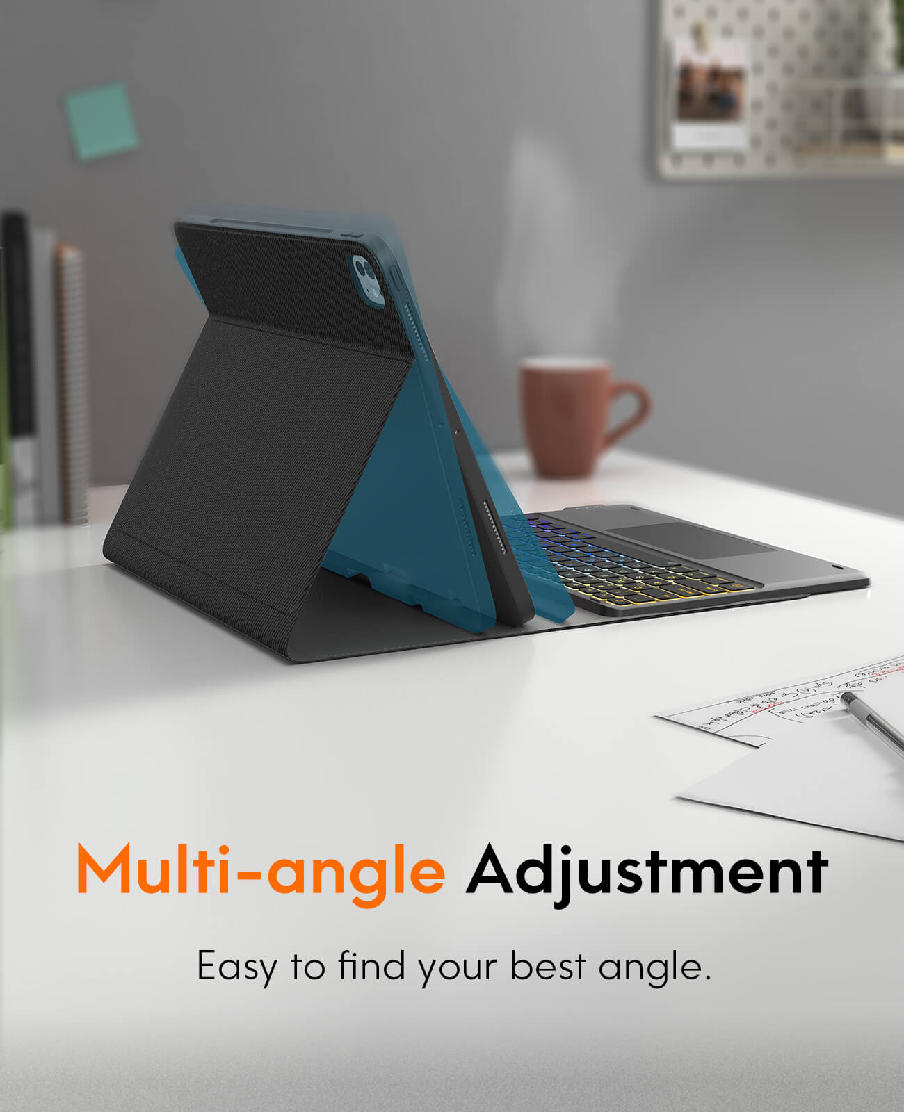 - 【Multi-Angle Adjustable】The keyboard case features a simple, protective design with easily adjustable stand angles. Whether for business, travel, or home office use, you can find the perfect viewing angle to suit your needs.