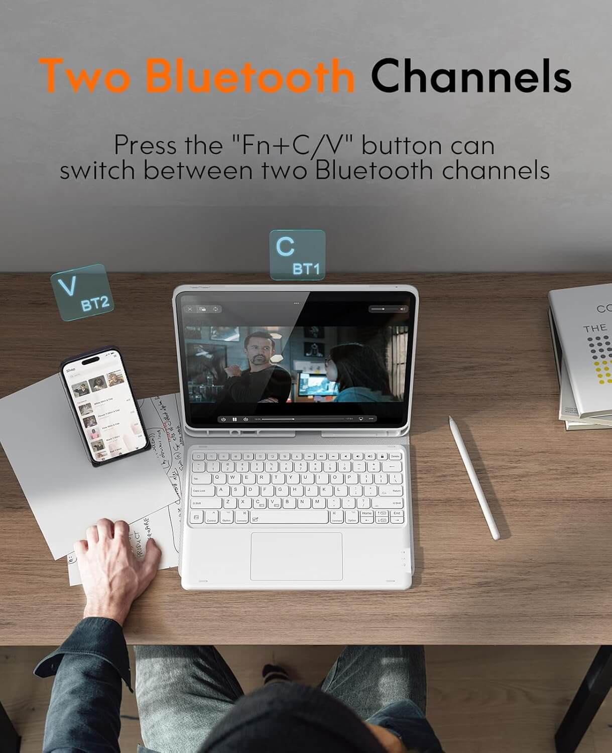 - 【Dual-Channel Connection】Seamlessly connect two devices at once with dual-channel bluetooth. Easily switch between channels with a single click, perfect for multitasking while studying or working. This enhanced connectivity improves interaction between your devices, increasing efficiency and saving you both space and hassle.