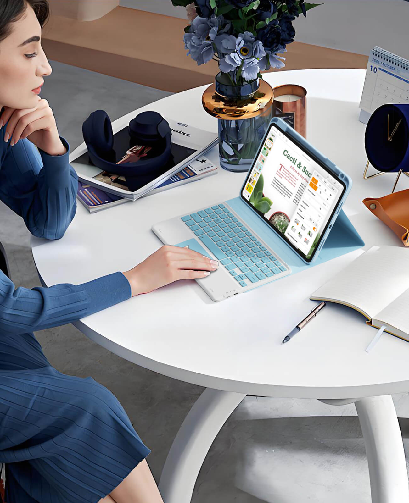 - [Smart Trackpad] This keyboard with touchpad for iPad Pro 11 is often more compact and lightweight, making it easier to transport and use with a laptop or tablet. The touchpad features the latest anti-touch technology and supports multi-functional gestures. That makes you more efficient and relaxed when using it.