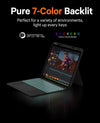 【7-Colors Backlit & Shortcuts】: With 7 backlight colors and 3 levels of brightness, it's easy to use your tablet even in dark environments. With a complete set of multimedia shortcuts.