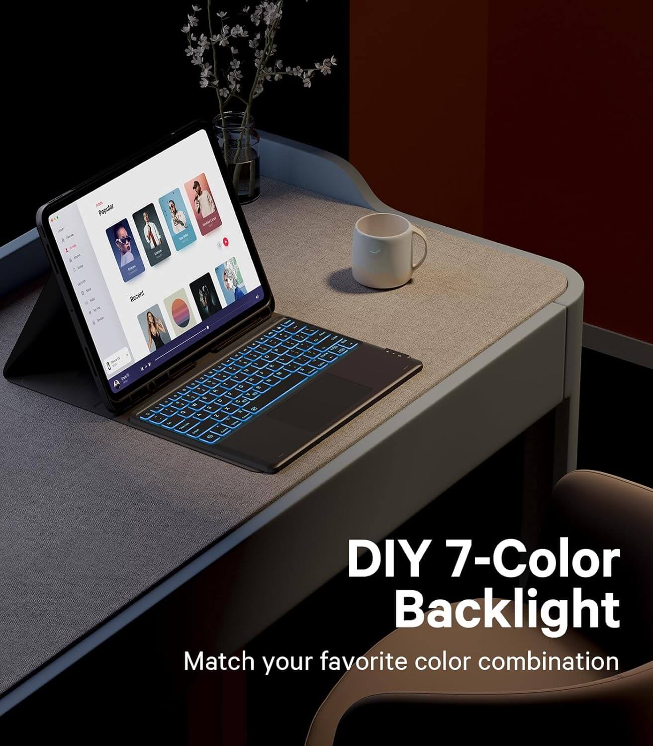 - [7-Color Backlit]: With the 7-Color Backlit and 3 Level brightness adjustment feature on the iPad Pro 13 inch keyboard, you can choose your favorite color to suit your mood or environment. The keyboard also comes with Multi-function keys, which allow you to control various functions on your iPad easily.