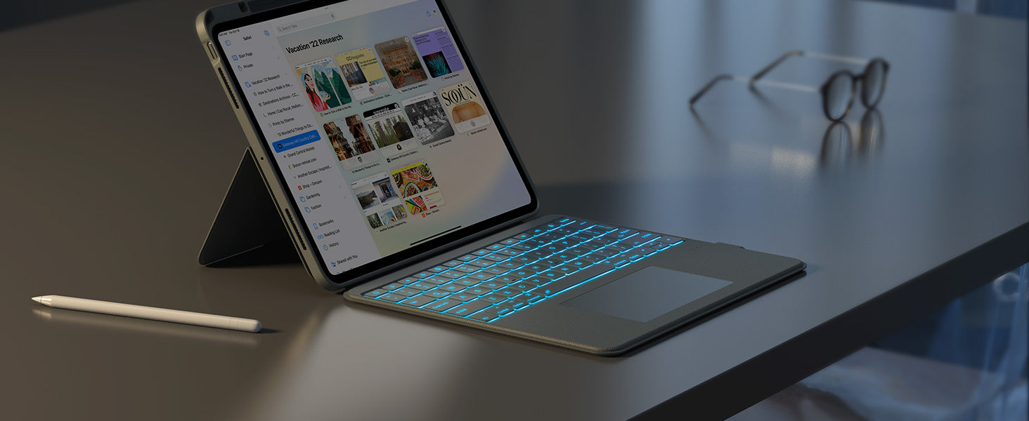 【7-Colors Backlit & Shortcuts】: With 7 backlight colors and 3 levels of brightness, it's easy to use your tablet even in dark environments. With a complete set of multimedia shortcuts.