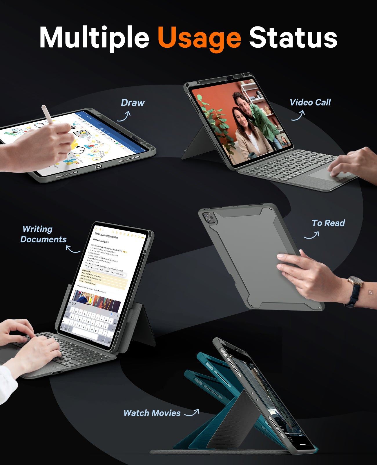 【Precise Multi-touch Trackpad】: Delivering precise touch responses for editing, browsing and watching videos. Transform your tablet into a laptop-like, enhancing productivity and creativity.