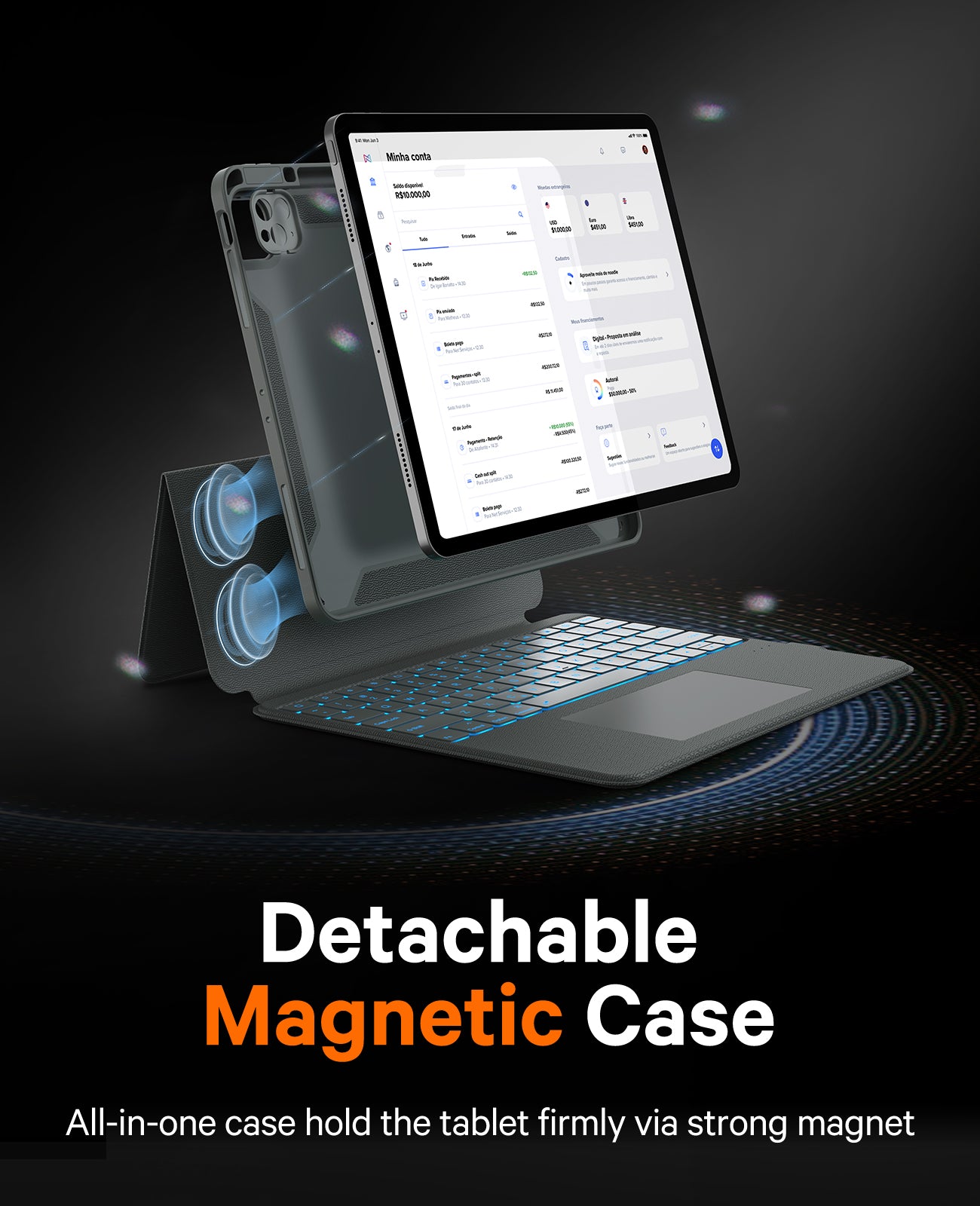 【Magnetic Detachable Keyboard】: Ultra-strong magnets seamlessly integrate the case with your tablet, allowing you to remove it and change orientation if not needed.