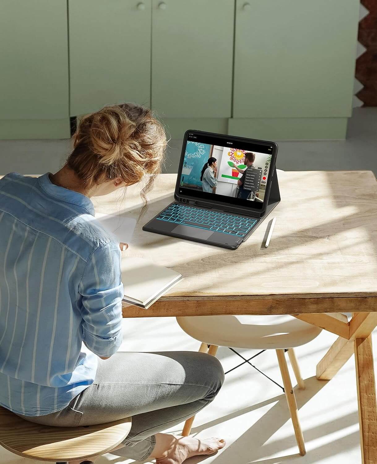 - Detachable Keyboard Case: Both the keyboard and the case where the keyboard is placed have magnetic attraction. The detachable design allows the keyboard for iPad Pro 11 to be used from a distance, making it easy to use in a variety of scenarios.